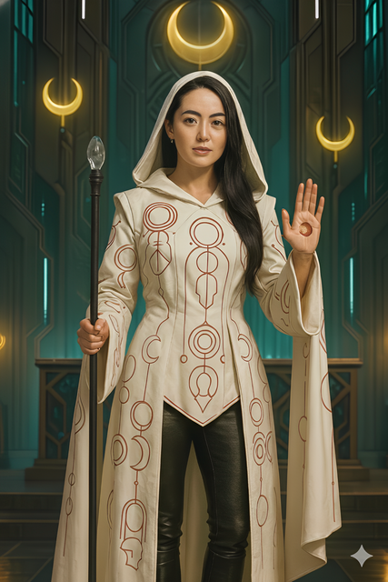 She was ordained when she was 23, there was very few other ministers to serve the growing Lunar community so she was promoted quickly and easily, taking a senior position within the church when she was in her mid thirties. She has her own prominent church located in the central district of Celeste 7 and is an influential member of her church. Her upbringing has caused her to lean further into her human-purist mentality and she has taken the church along with her. Several run-ins with gangsters when she was a junior cleric have taught her pragmatism and where she needs to draw flexible lines in the sand.